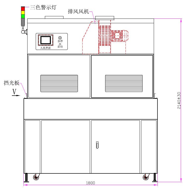 1. UV燈功率:10.0kw*4支(鹵素燈)