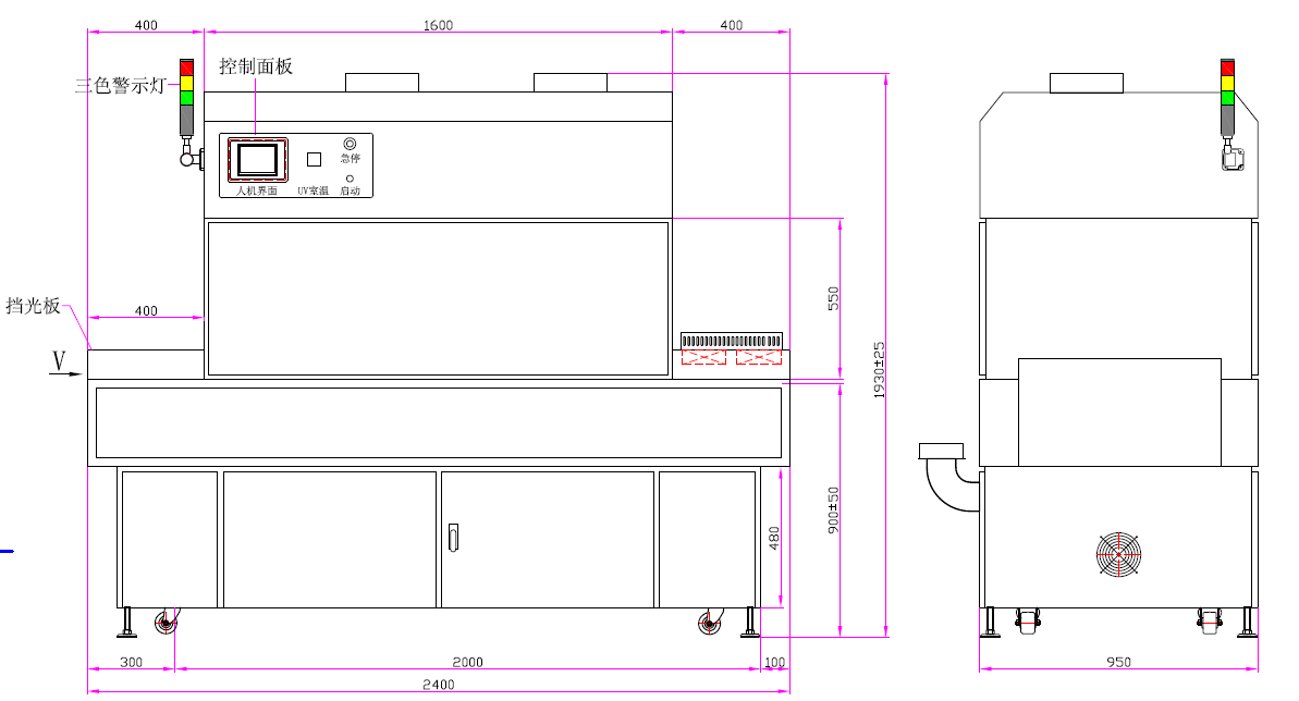 可調(diào)寬窄UV汞燈固化機(jī)加上下排風(fēng)水冷PCB三防漆立式隧道爐
